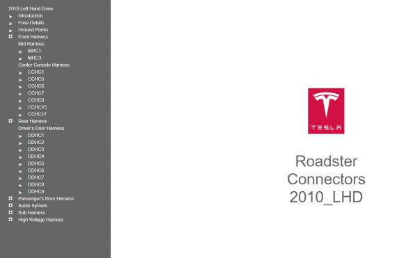 Tesla Roadster Connectors 2010 LHD Circuit Diagram