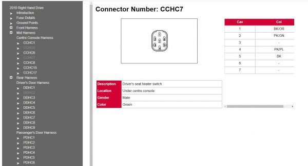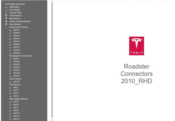 Tesla Roadster Connectors 2010 RHD Circuit Diagram